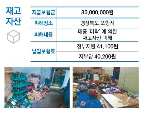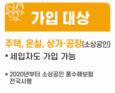 - 대상 재해 : 태풍, 홍수, 호우, 강풍, 풍랑, 해일, 대설, 지진(지진해일 포함)