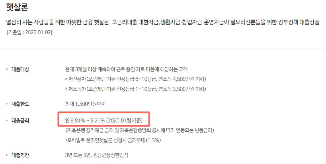 이미 많은 분들이 이용을 하고 있는 상품으로 저신용,저소득 서민에 대한 금융제도인 햇살론이 있습니다.