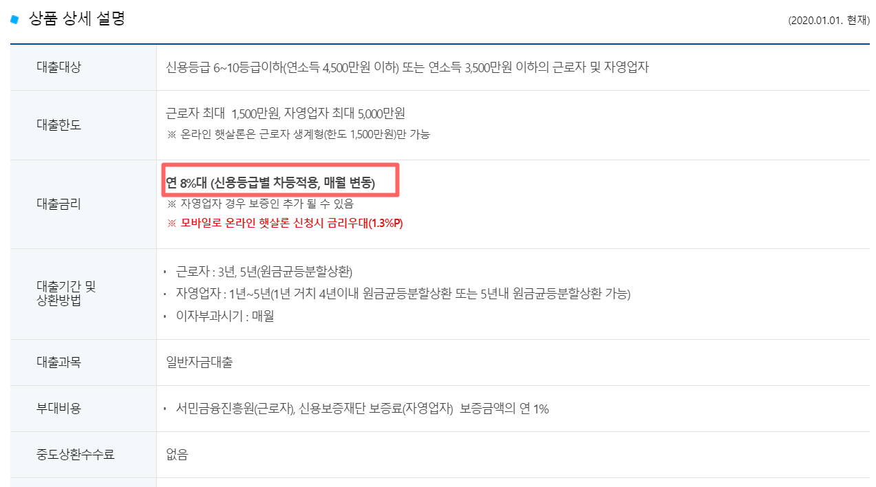 특히 햇살론은 신용등급이 6등이이 안되는 근로자와 자영업자, 대학생,청년등 다양하게 폭넓게 지원이 되느 상품인 만큼