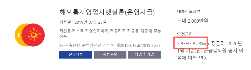사업자분들에게는 7%정도의 금리로 사업운영자금을 지원 받을 수있으므로 조건이 되시는 분은 알아 보시면 도움이 충분히 되리라 생각됩니다.