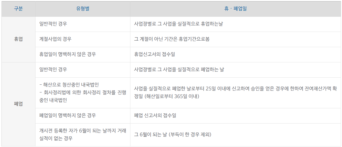 휴·폐업 신고(부가가치세법 제8조 및 동법 시행령 제13조)