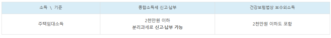 그러나 건강보험에서 보수외소득을 산정할 때는 분리과세되는 주택임대소득도 기본적으로 포함하게 되어 있습니다.