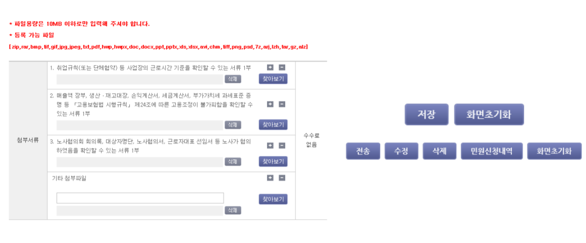 • 고용보험료가 연체된 경우 지원금을 지급받을 수 없습니다. 신고서를 제출하기 전에 고용보험료 연체여부를 확인합니다