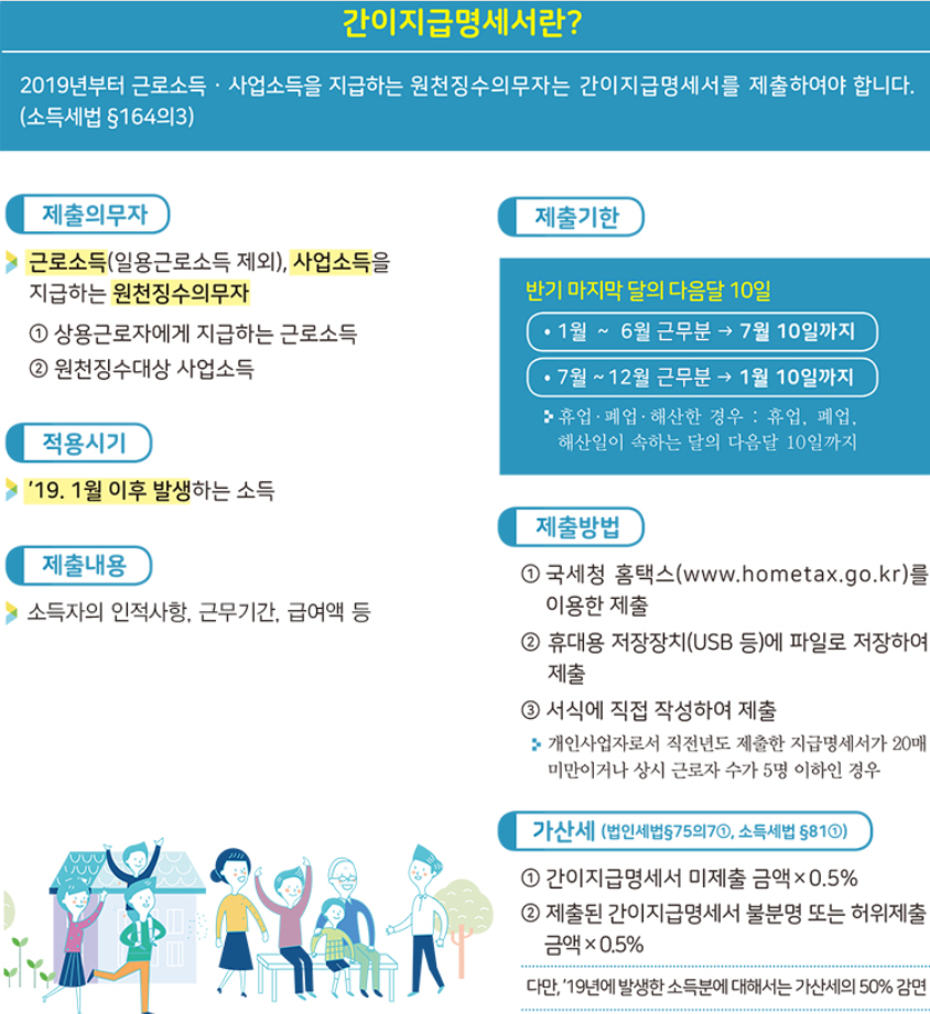 다만, 2019년부터는 근로소득간이지급명세서 제도가 도입되어 기존의 지급명세서 제출과 별도로 근로소득간이지급명세서를 제출하여야 한다.