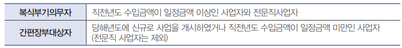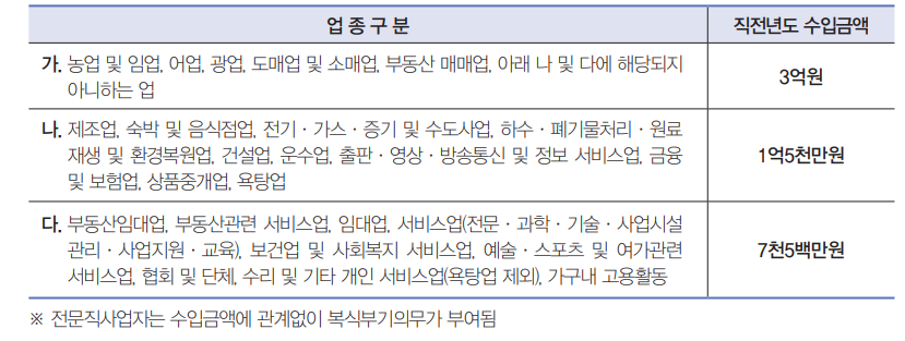 ● 복식부기의무자와 간편장부대상자 판정기준 수입금액(2016년 귀속 기준)