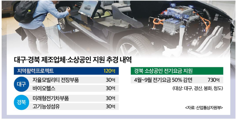 대구·경북 주력 산업 지원에 120억, 경북 특별재난지역 소상공인에 730억원을 지원한다는 계획이다.