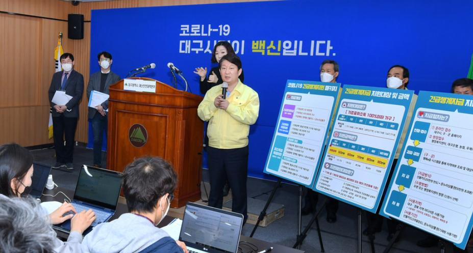 코로나19 확진환자가 6411명이나 발생해 지역경제가 사실상 마비된 가운데 대구시가 오는 4월16일부터 45만가구에 긴급생계자금 50만원∼90만원씩을 지급하기로 했다.