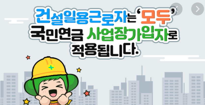 2018.8.1 국민연금법 시행령 개정으로 2020.8.1부터 모든 건설일용근로자의 가입기준이 1개월간 근로일수가 20일이상에서 8일이상으로 변경되었습니다.