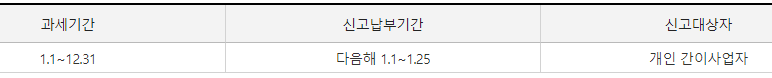 개인 간이과세자는 1년을 과세기간으로 하여 신고·납부하게 됩니다.