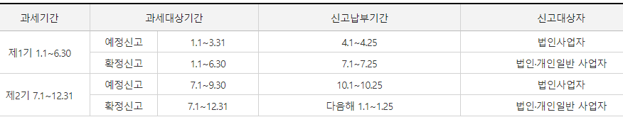 ※ 일반적인 경우 법인사업자는 1년에 4회, 개인사업자는 2회 신고