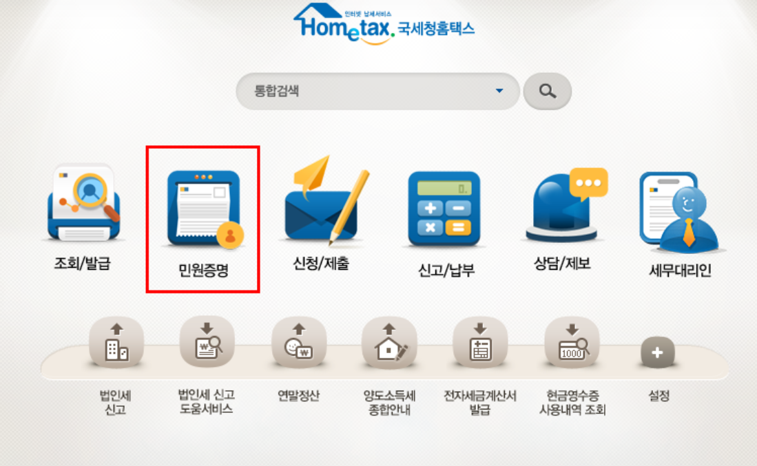 ▶홈택스 > 민원증명