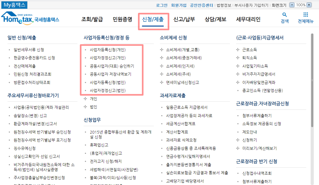 (참조: “홈택스(https://www.hometax.go.kr)>신청/제출>사업자등록신청/정정 등”)