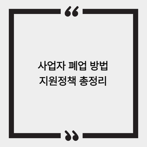사업을 운영하다 보면 여러 가지 이유로 폐업을 고려해야 할 때가 있습니다. 특히 최근 경제 상황이나 개인적인 사정으로 인해 사업을 지속하기 어려운 경우가 많습니다. 오늘은 사업자 폐업 방법과 폐업 시 받을 수 있는 지원 정책에 대해 자세히 알려드릴게요.