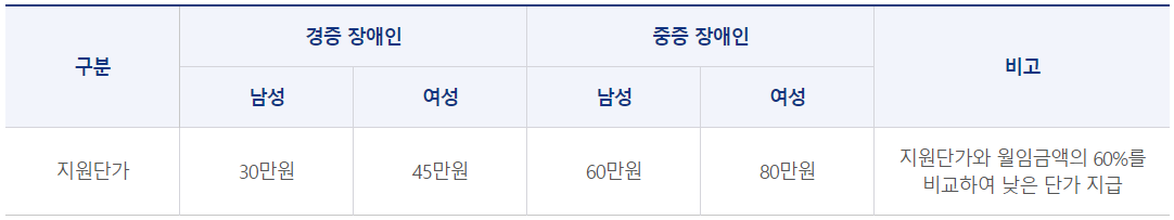 지원내용 : 초과 고용 장애인 근로자 1인당 월 월 30~80만원 지급