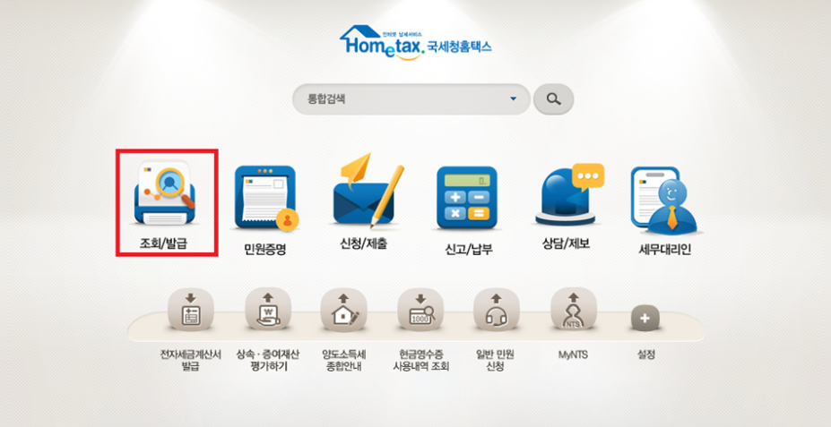 홈택스에 접속하여 로그인 후 조회/발급을 클릭