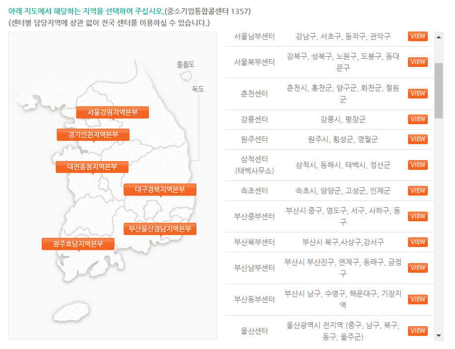 공단소개 〉 찾아오시는길 〉 전국 소상공인지원센터