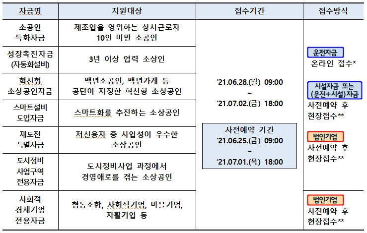 - 시설자금 또는 운전자금·시설자금 동시 신청 : 사전예약 후 현장접수