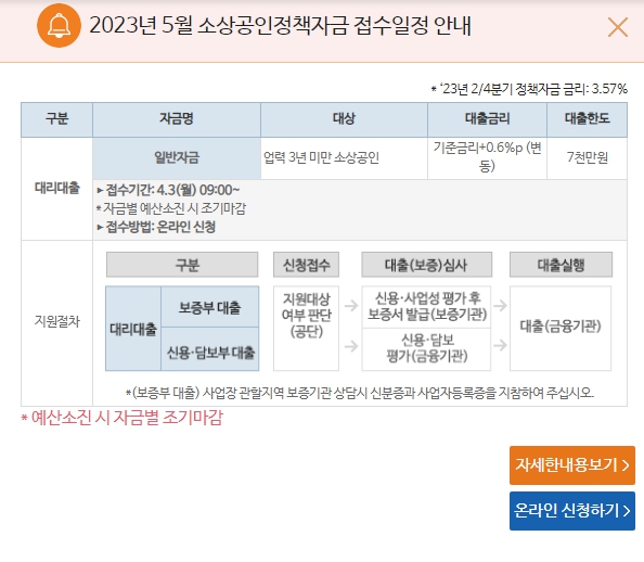 소상공인시장진흥공단 금융지원실 (☎042-363-7203)