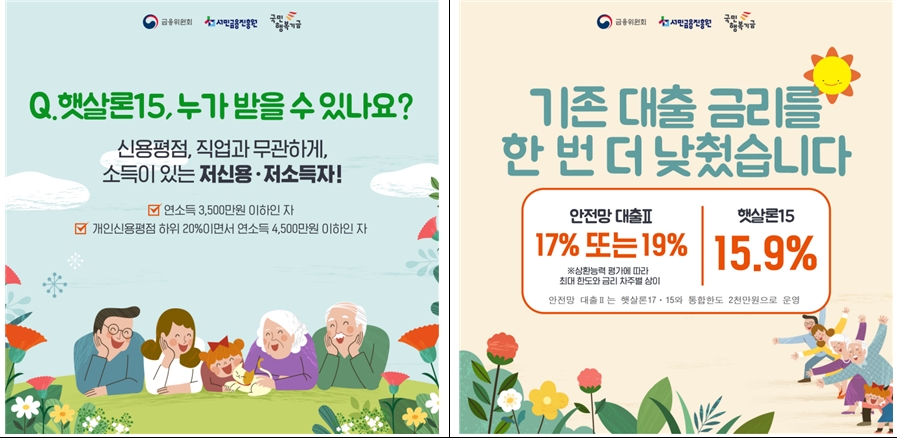 최고금리 인하에 따른 금리 하락을 반영해 햇살론17을 햇살론15로 변경한다.