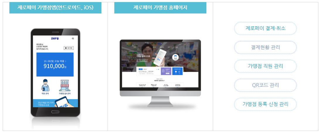가맹점은 제로페이 결제를 이용해 가맹점수수료 부담을 크게 낮출 수 있으며(전년도 매출 8억원 이하 0%), 제로페이 웹사이트와 전용 앱을 사용하여 결제내역을 손쉽게 관리할 수 있습니다.