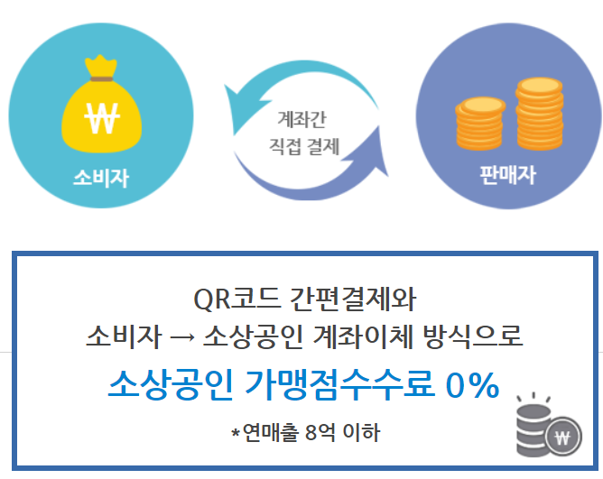 민관이 협력하여 간편결제와 계좌이체 수수료는 대폭 낮추고 QR코드를 사용하여 간편하게 결제할 수 있는 서비스를 제공하게 되었습니다.