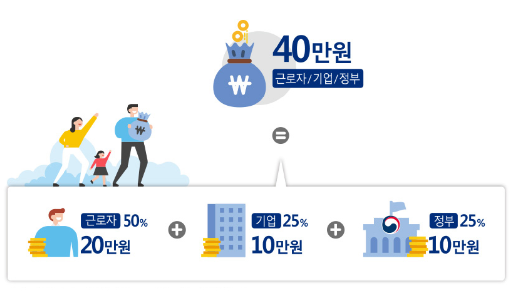 - 여행경비 적립 40만원(근로자20 + 기업10 + 정부10)