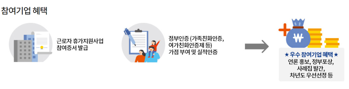 - 참여근로자 : 휴가비(국내여행경비), 전용 휴양소, 상품 할인, 특별이벤트 제공 등