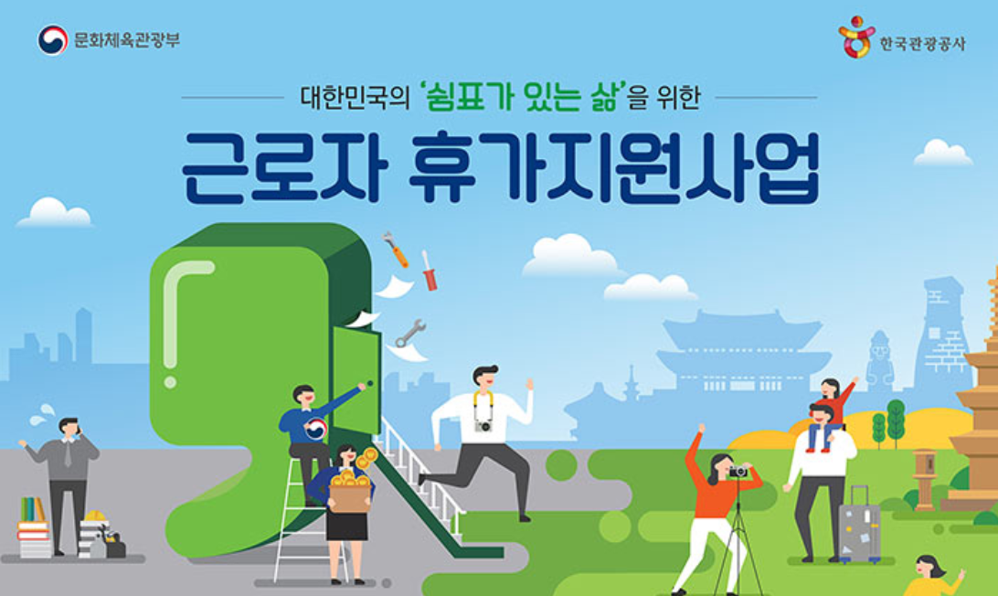 문화체육관광부와 한국관광공사가 휴가문화 개선과 국내여행 활성화를 위해 실시하는 '근로자 휴가지원 사업'은 근로자가 20만 원을 부담하면 기업이 10만 원, 정부가 10만 원을 함께 지원해 근로자가 적립된 40만 원을 국내여행 경비로 사용하는 사업이다.
