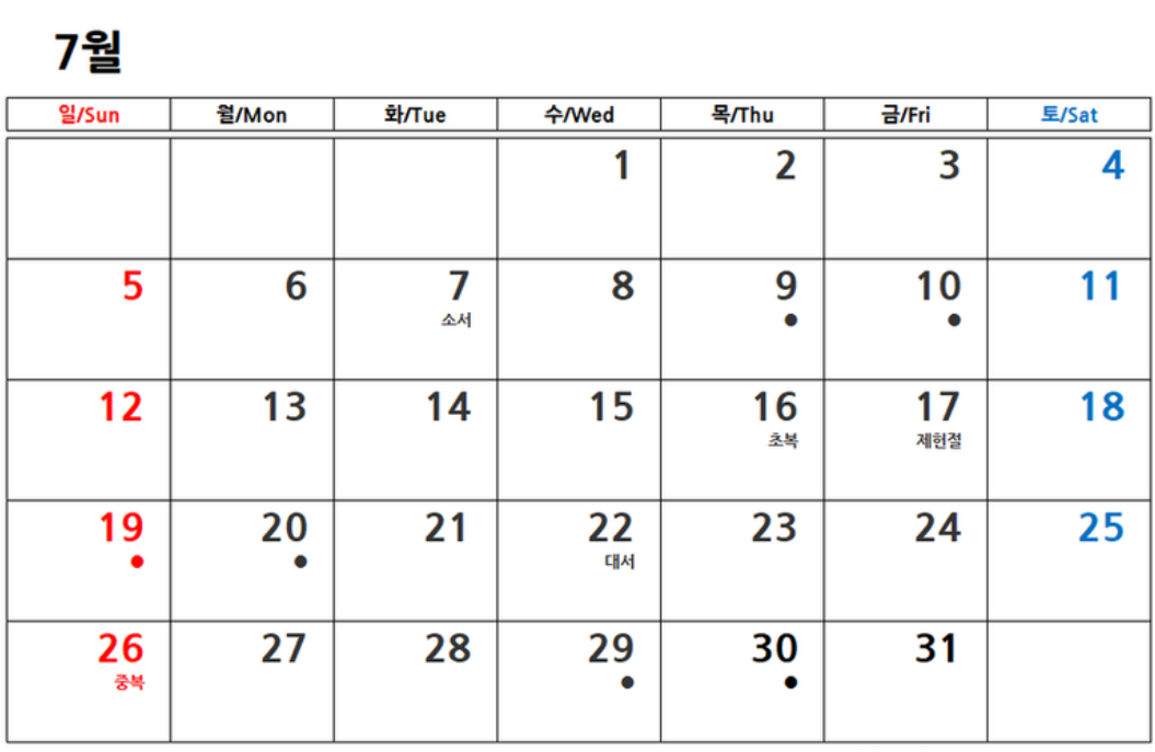 복(伏) 자는 사람이 개처럼 엎드려 있는 형상으로 여름은 불(火)에 속하고, 가을은 쇠(金)에 속해요“여름 불기운에 가을의 쇠 기운이 세 번 굴복한다.”라는 뜻으로 복종한다는 뜻의 복(伏) 자를 써서 삼복이라 합니다.