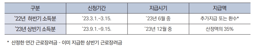 ▶ 하반기 신청자는 상반기와 하반기의 총급여액 등을 합산하여 근로장려금 지급액을 산정합니다.