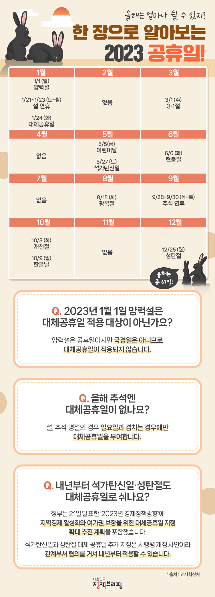 올해 공휴일은 작년과 같이 총 67일입니다