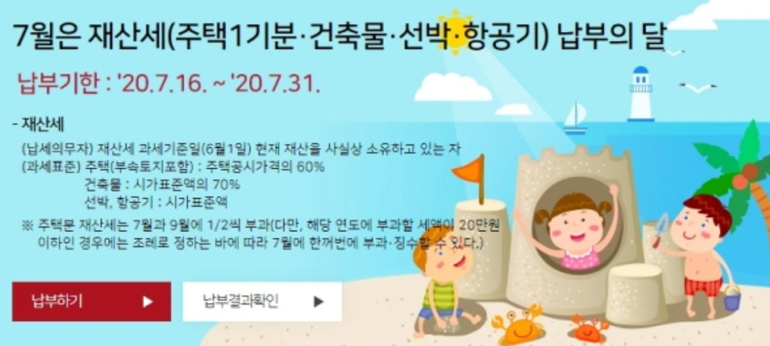 무더위가 시작하는 7월달에는 이슈중에 하나가 재산세 납부의 달이기도하다.